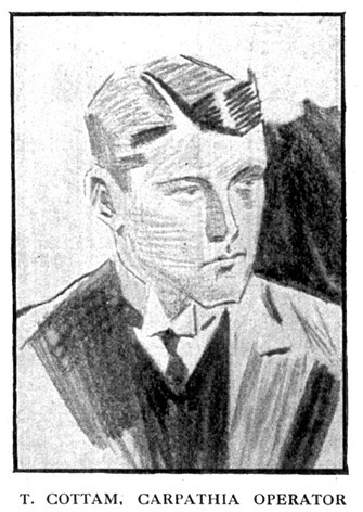 À 20 heures 30, et pour deux nouvelles heures, Smith et Newlands se relancent dans des auditions. Ce planning chargé s’explique probablement par les incertitudes sur leur capacité à conserver longtemps sous la main les témoins. C’est donc Harold Cottam, l’opérateur radio du Carpathia, qui est désormais sollicité. Il revient tout d’abord sur sa précédente expérience, à terre comme en mer, avant de parler de son service sur le Carpathia et du fait qu’étant seul opérateur, il peut gérer son emploi du temps comme il l’entend, sans consignes ni du gouvernement ni de sa compagnie. Il confirme également que ses ordres ne viennent que du capitaine, et qu’il est impossible de recevoir des signaux de détresse lorsque l’opérateur est absent.